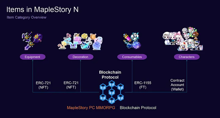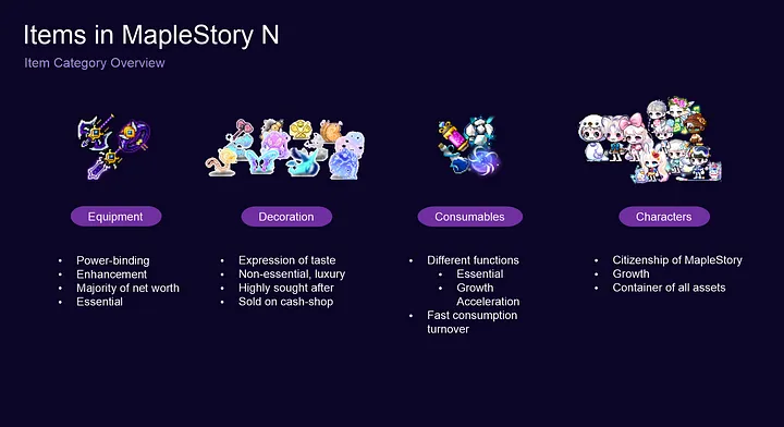 So, on top of MapleStory MMORPG, which has been loved for over 20 years, we add these two new elements: 1) Supplying items in limited quantities like the real world and 2) Letting the demand of item drive its price. By applying these two simple elements, the game could be more: 1) economically immersive, 2) RX is enhanced, and 3) therefore more sustainable. We call this game MapleStory N.