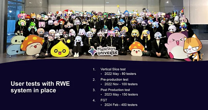 Now, with this system, we’ve conducted a number of tests, some internally and some with real gamers. Let’s review them. Over the past two-plus years of development, we’ve undergone several testing iterations. Initially, in 2022, we started with a vertical slice, or PoC, containing only a fraction of the features we just discussed. We’ve gradually increased the scope of coverage, and most recently, in February, we conducted an FGT with 400 testers on a build that was quite ready in terms of volume and depth.