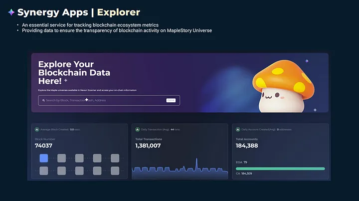 This is a product that showcases the various properties of items and NFTs available on MapleStory Universe. We envision that this, as well as the Explorer will be foundations for further strategic gameplay and understanding.