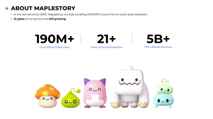 Right in the middle, you can see MapleStory N, which is our blockchain adaption of the beloved classic MMORPG.