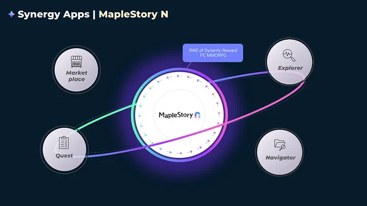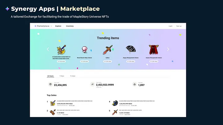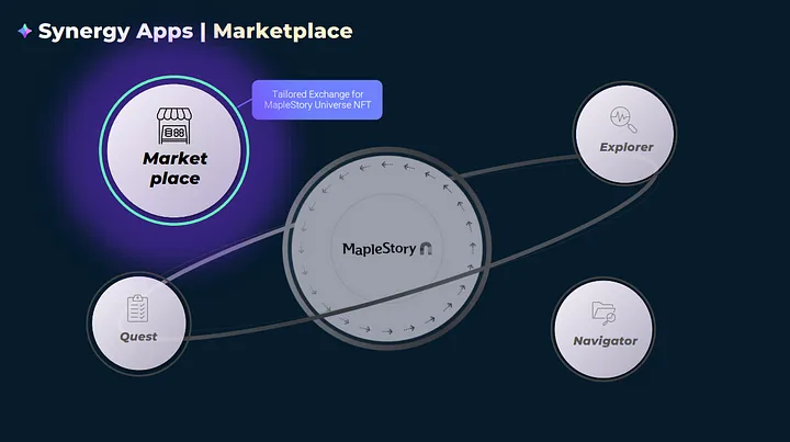 One example of a Synergy App is the Marketplace. We will have a proprietary marketplace that users can trade MapleStory and its items at, using in-game utility tokens.