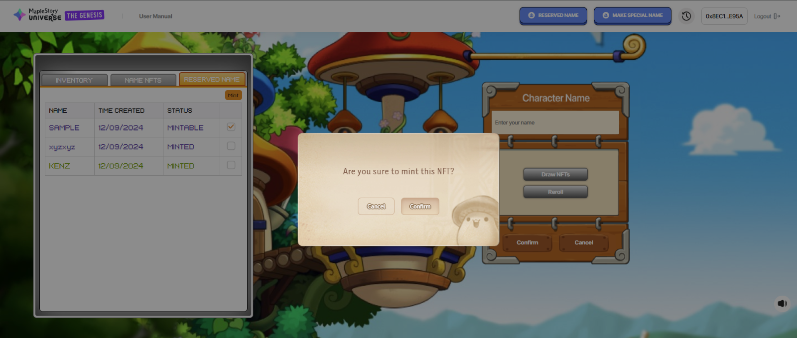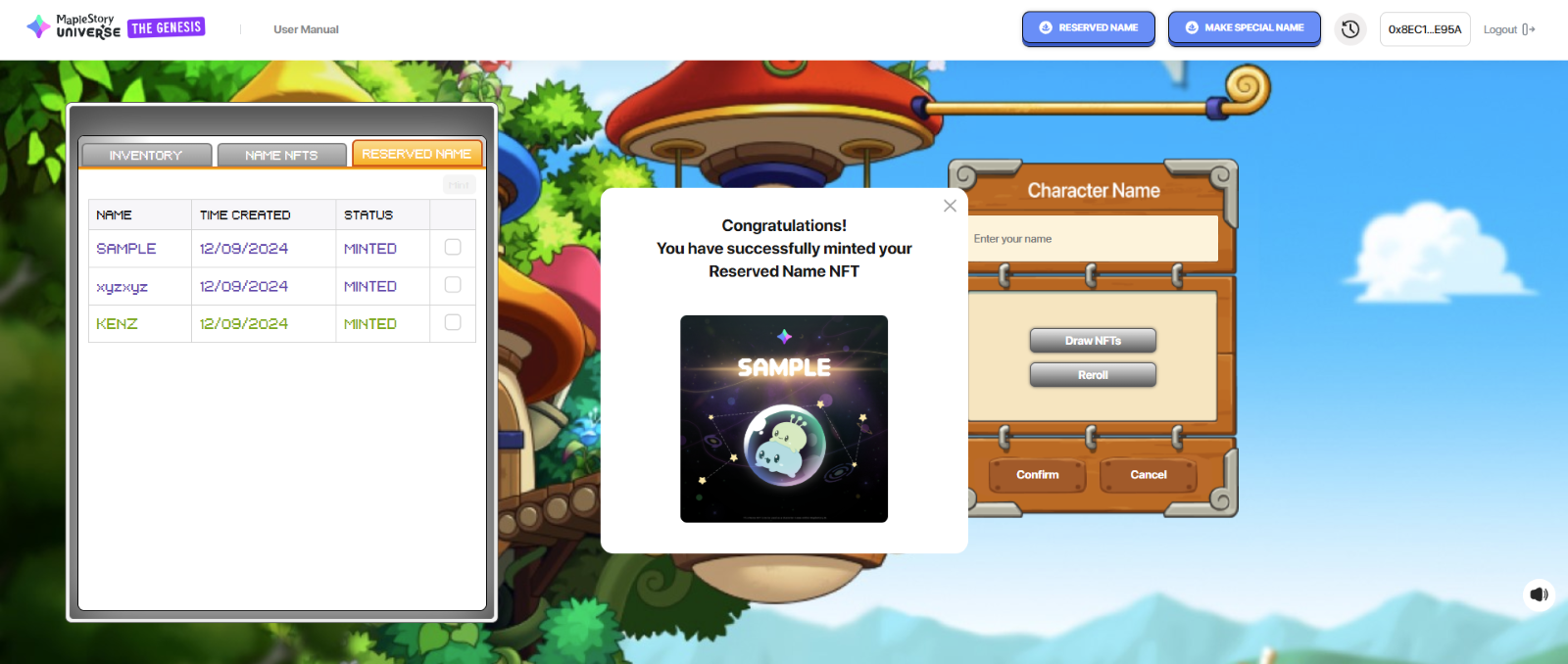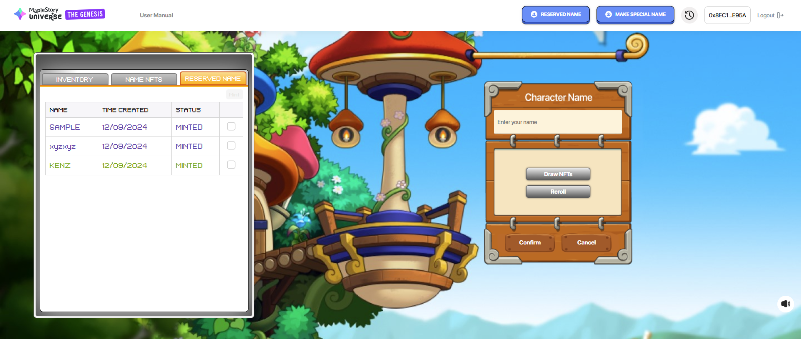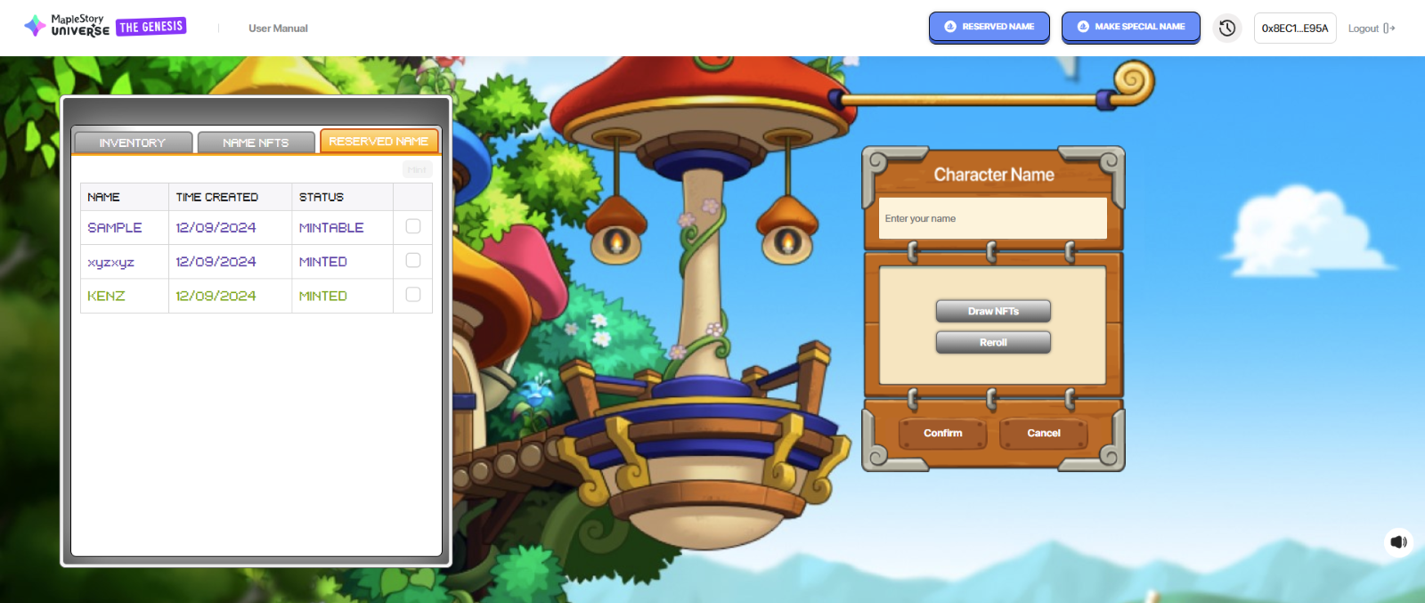 After the official launch of MapleStory N, you can redeem your MapleStory Universe - Reserved Name NFT to use as your character's in-game name. More details will be provided on further notice.
