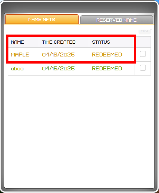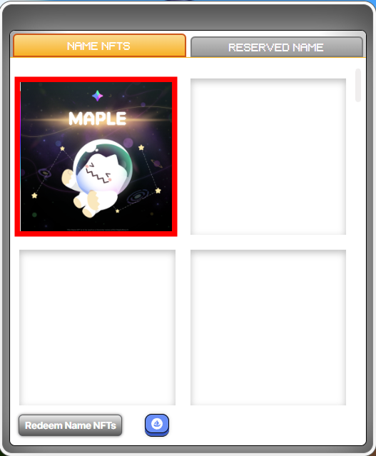 ※ Redeemed names are permanently assigned to your wallet account and cannot be transferred or sold.