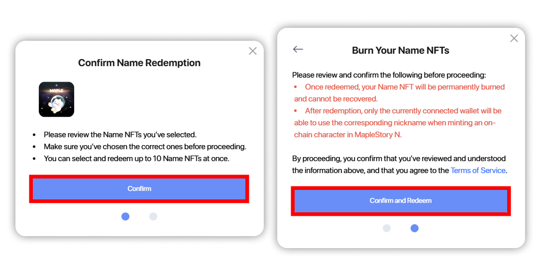 After both confirmations are complete, your selected NFTs will be redeemed and permanently linked to your MapleStory Universe account.