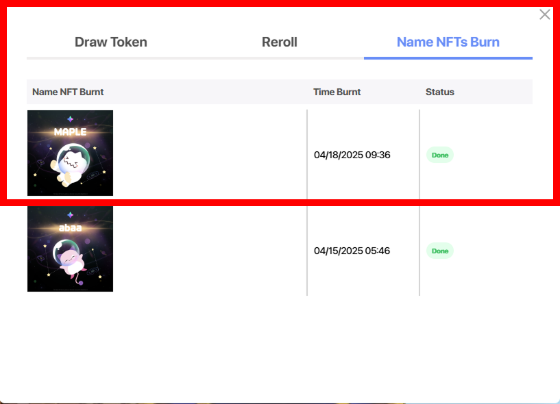 ※ Once a name is redeemed, the corresponding Name NFT is permanently removed from circulation.