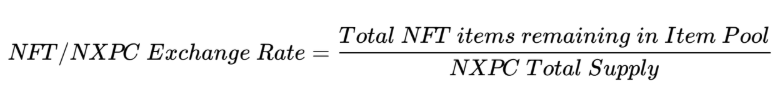 • If there are 1,000,000 items in the pool and the Total NXPC supply is 100,000, the Exchange Rate is 10 (meaning 10 items are required for 1 NXPC).